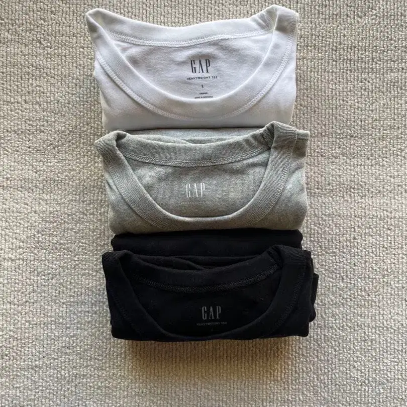 GAP 헤비웨이트 크롭 T셔츠 L 3장 세트 화이트 블랙 그레이