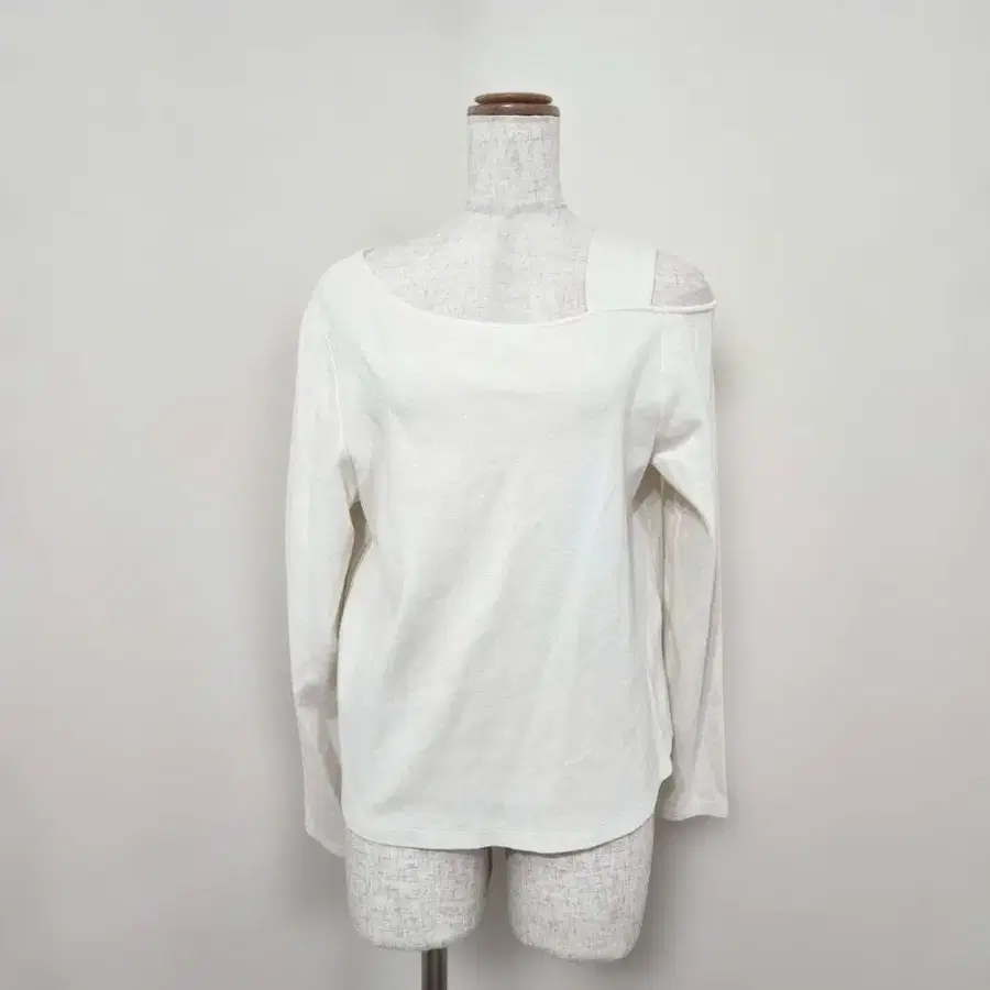어깨의 스트랩이 특징인 비대칭 디자인으로, 내추럴한 성숙 캐주얼에 딱 맞습니다. 약간의 신축성이 있어 착용감이 쾌적합니다.