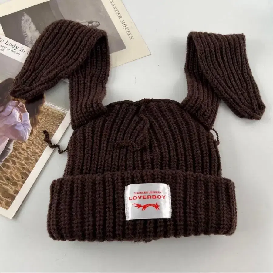 LOVERBOY 토끼 귀 니트 모자 프리 사이즈