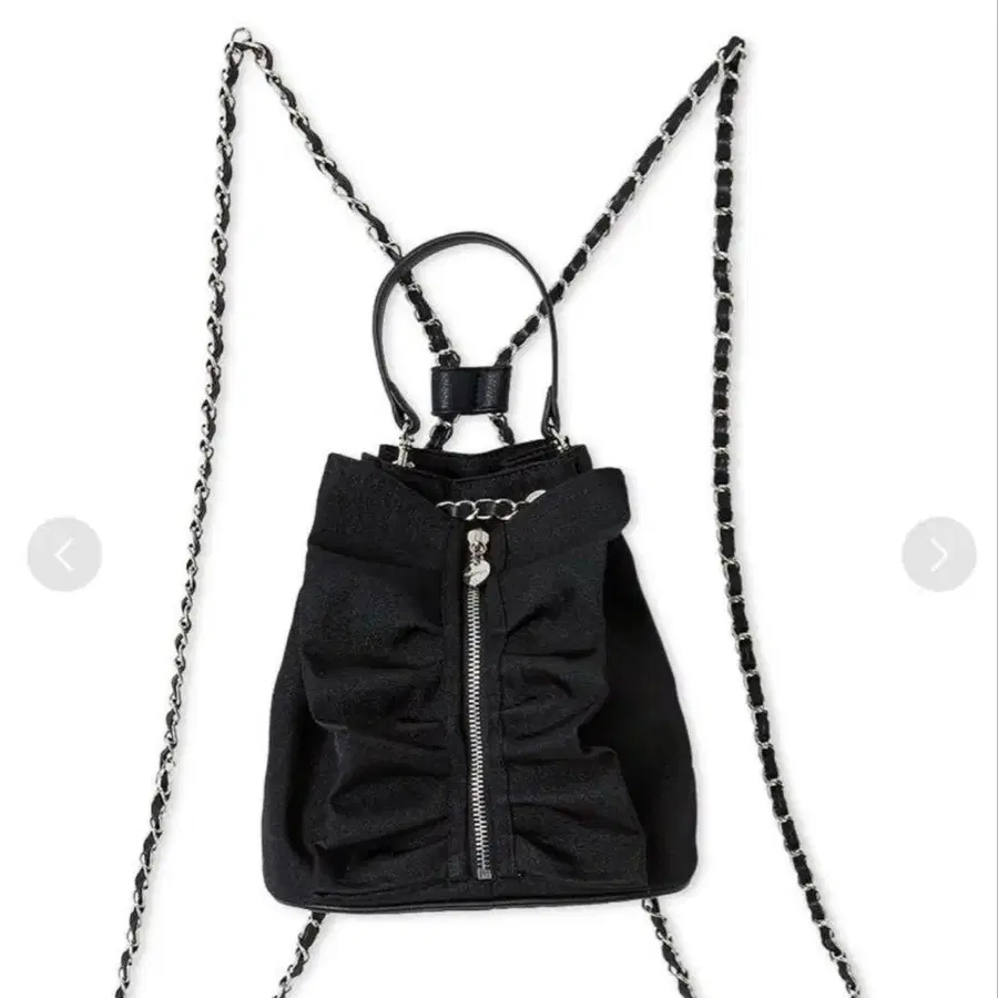 정면의 리본 같은 개더 프릴이 눈길을 끄는 색 백입니다.
