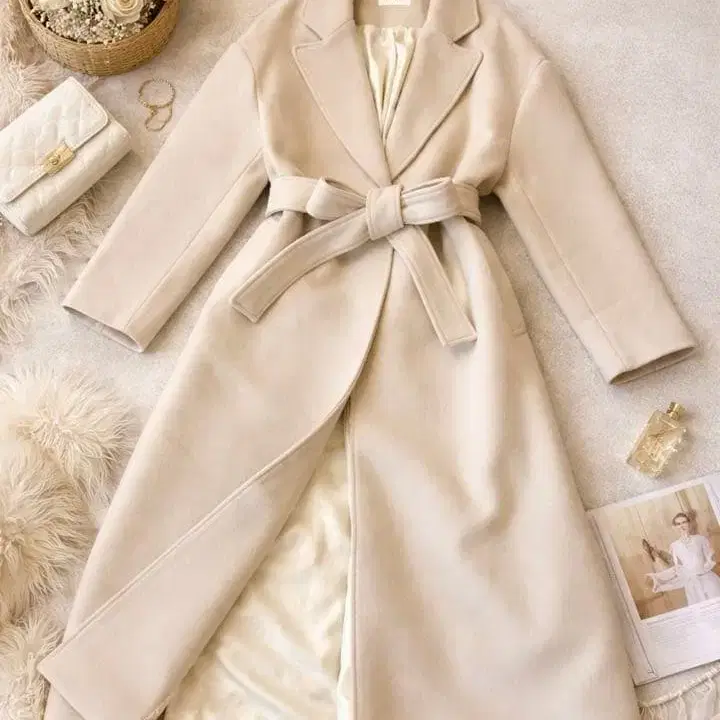 [ SNIDEL ] 아름다운 실루엣 울 혼방 벨트 포함 베이지 롱 코트