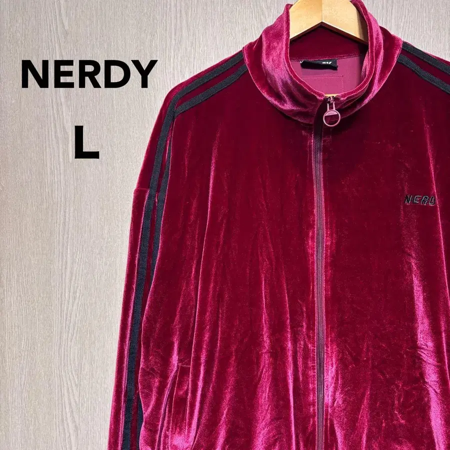 NERDY 벨로아 저지 L 와인 레드 자수 로고