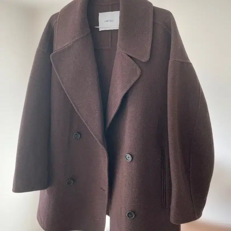 브라운 울 더블 브레스트 피코트