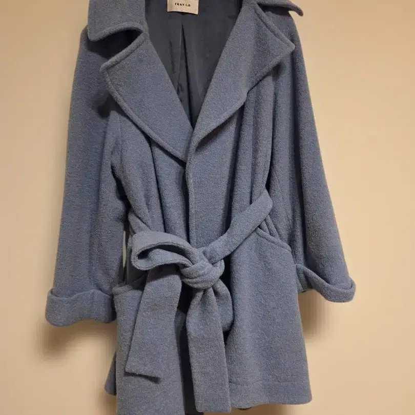 라이트 블루 체스터 코트 플리스 소재