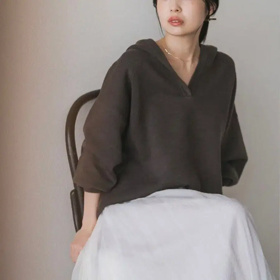 NOBLE 접결 턱 편직 후드 풀오버