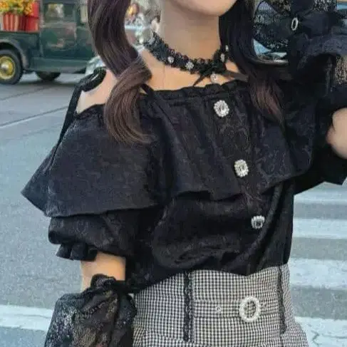 마시로 아리스 x 시마무라 오프숄더 블라우스