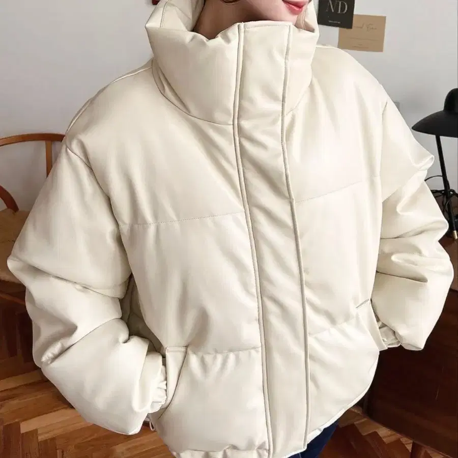 스탠드 카라 파이버 다운 소프트 인조 가죽 블루종 moment+