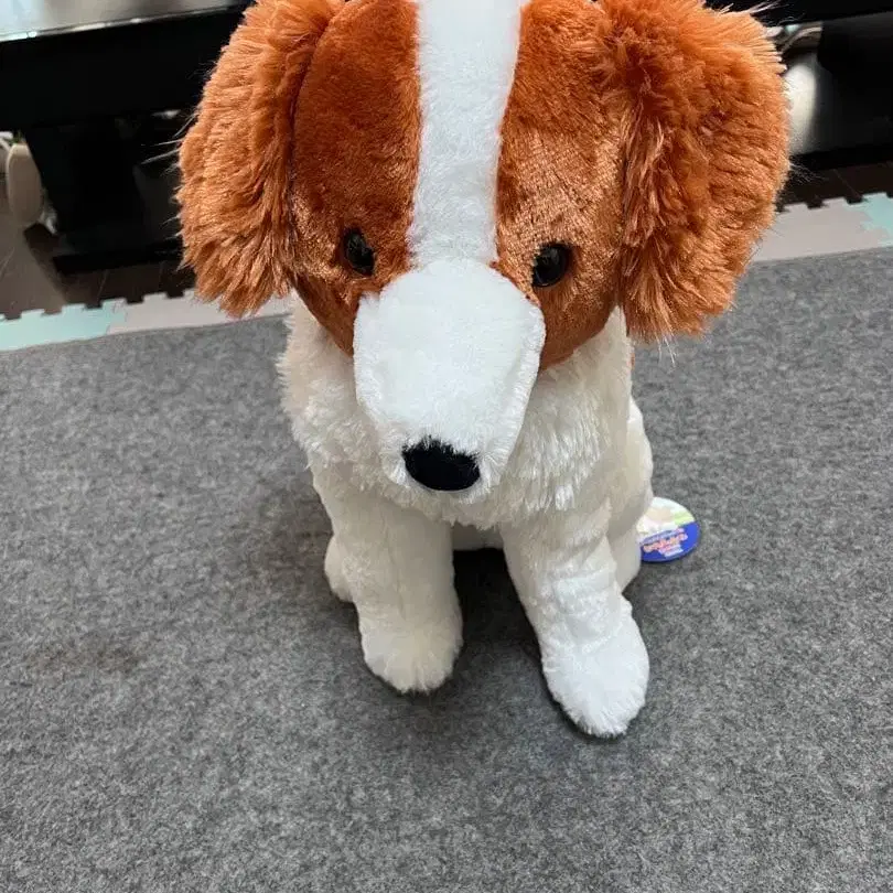 리얼 강아지 봉제 인형 중형 브라운과 화이트