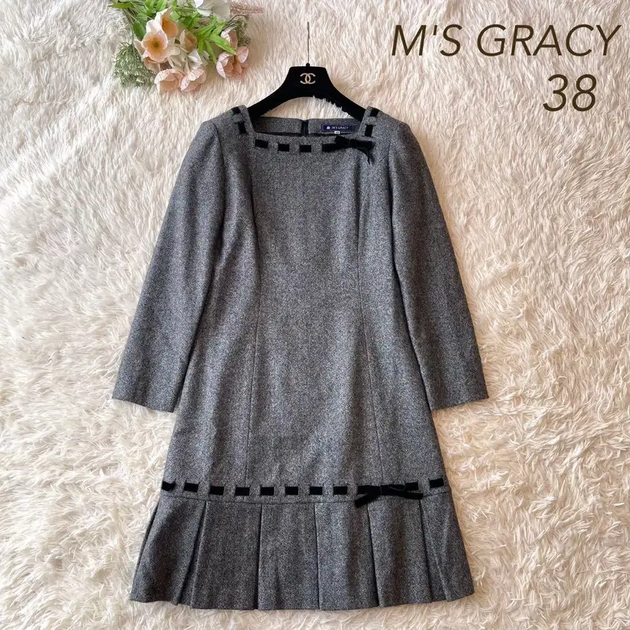 새상품급 M'S GRACY 트위드 벨로아 리본 원피스 그레이 38
