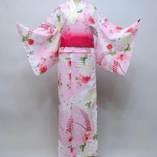 유카타 단품 여성용 JUNO 면 100% 백합 작약 꽃무늬 NO17905