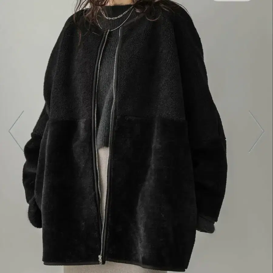 Lajour 블랙 보아 절개 노카라 코트 La-gemme