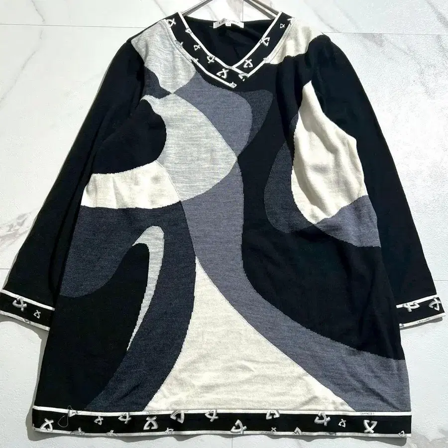 자동 번역되었어요. 원문보기컨디션 최상 ✨ 레오나르 스포츠 튜닉 기하학 패턴 모노톤 42 울