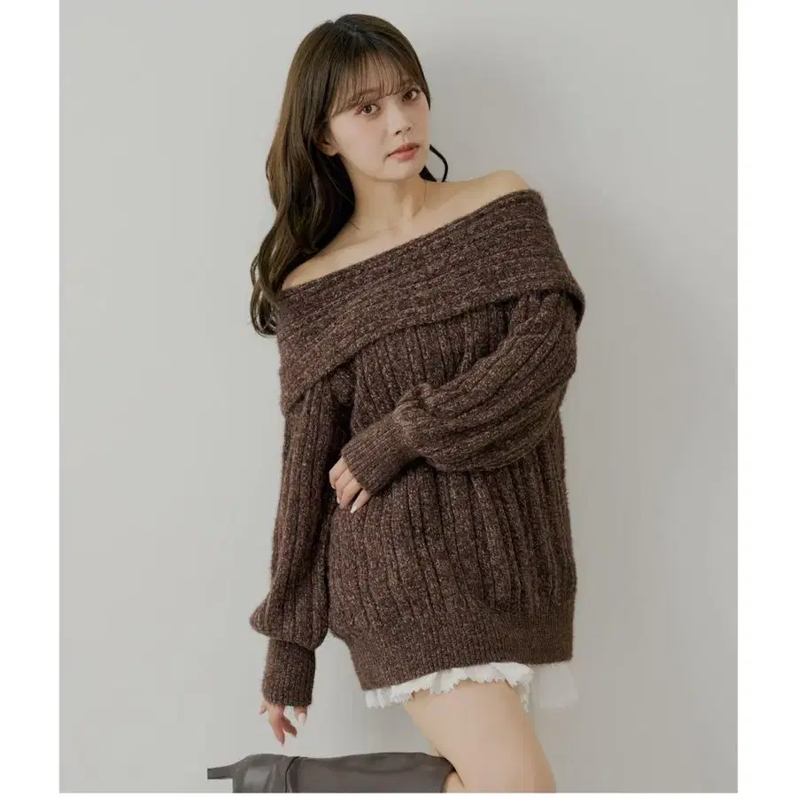 Chico 치코 전후 2way 샤기 오프숄더 미니 원피스 니트 원피스