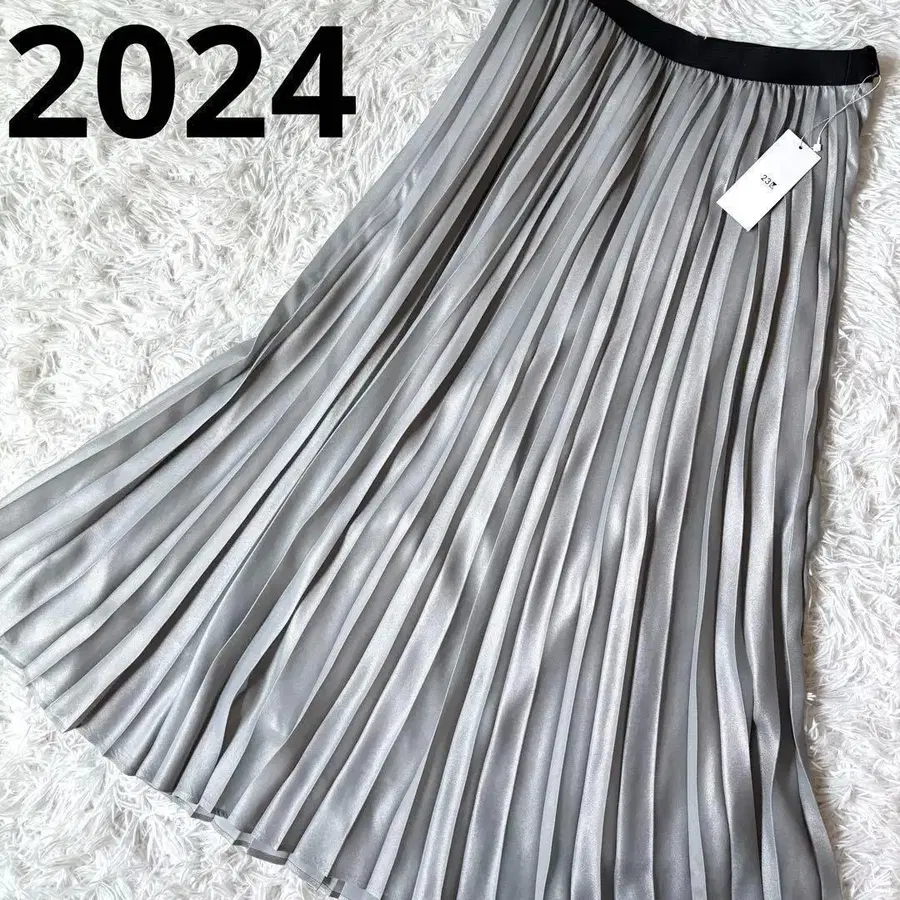 새상품/L 상당/24년 23구 샤이니 플리츠 스커트 롱 기장 실버 계열
