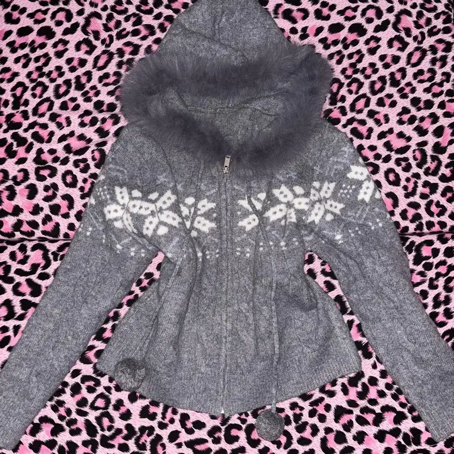 y2k 그런지 니트 후드티 TRALALA 퍼 자켓 모리걸 헤이세이