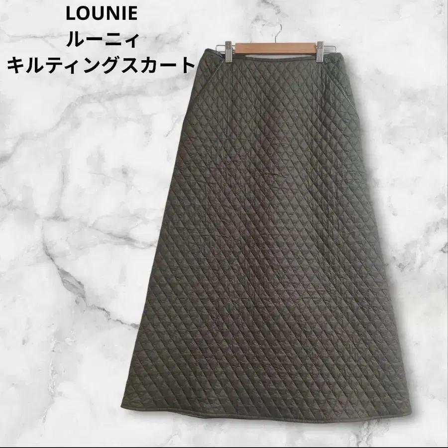 LOUNIE 루니 퀼팅 롱 플레어 스커트 카키 38