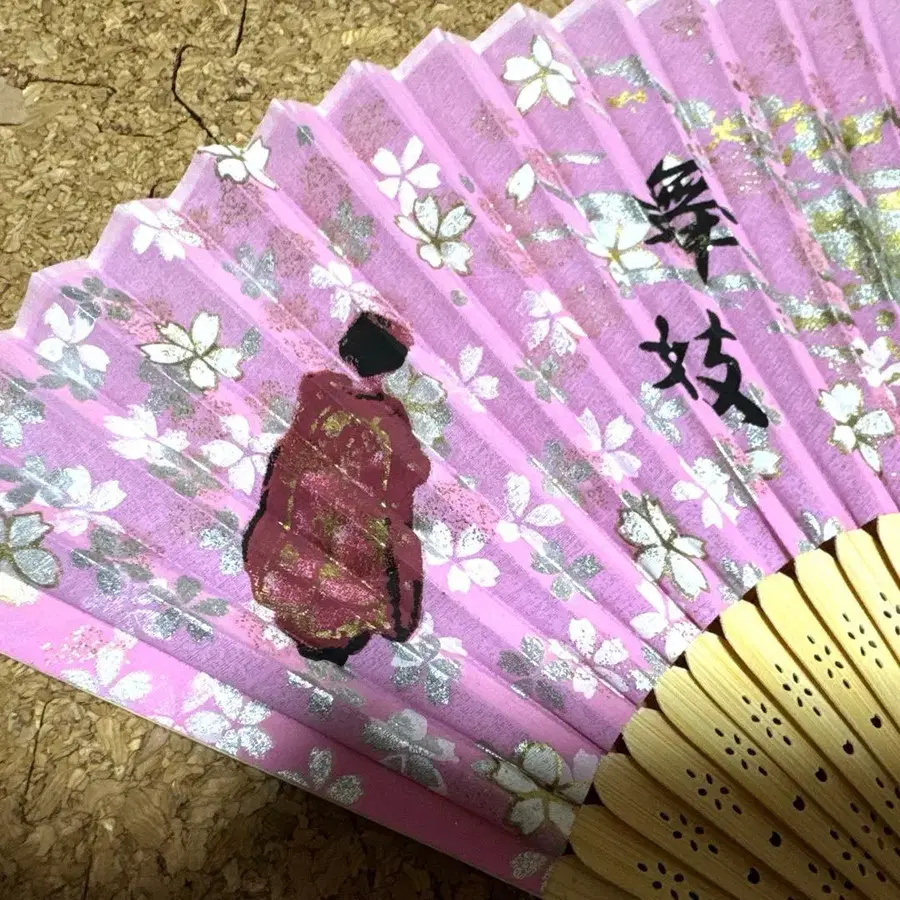 미사용 새상품 고급 실크 부채 센스 마이코 교토 기온 일본 핑크