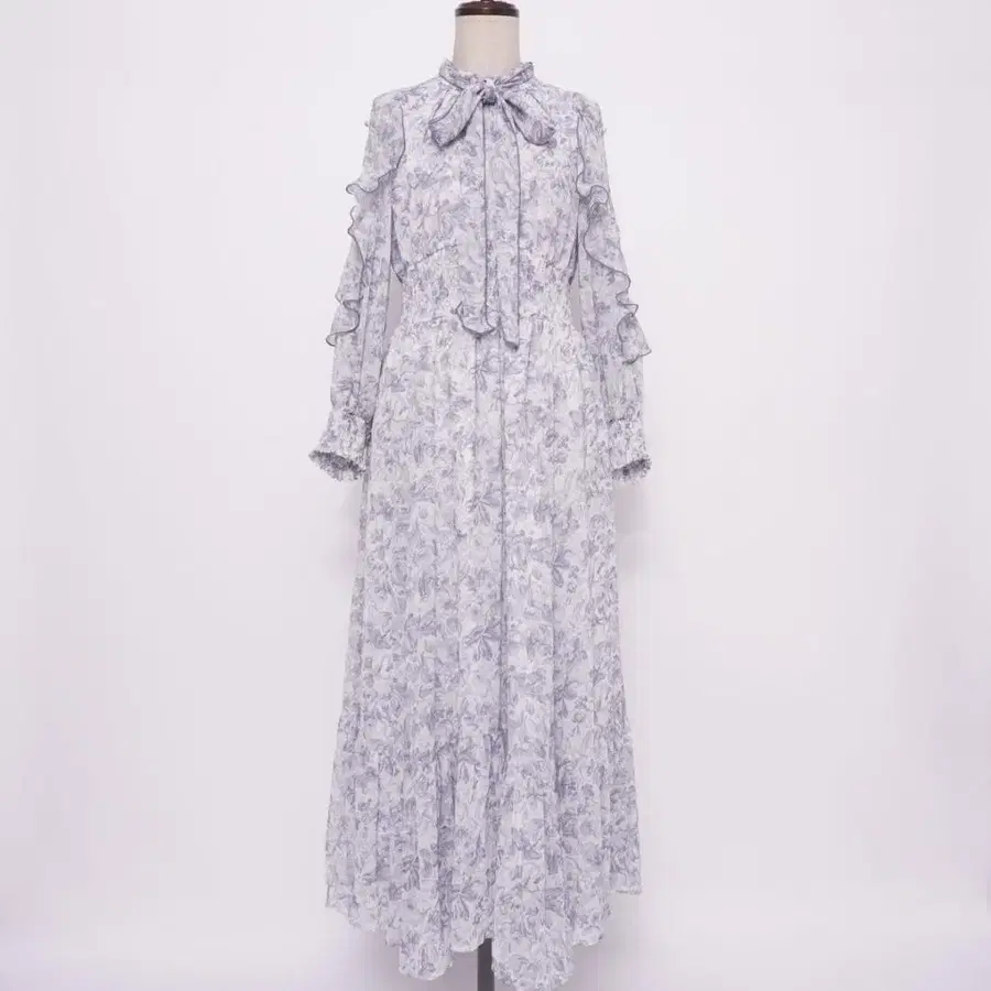 자동 번역되었어요. 원문보기새상품급 아푸와이저 리셰 자카드 프린트 원피스 꽃무늬 플레어 리본 타이 시어 파랑 블루 그레이 사이즈 2*LD418