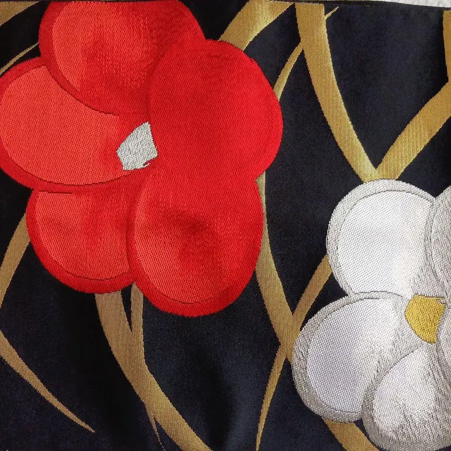 나고야 오비 꽃무늬 블랙 베이스 빨간색 화이트