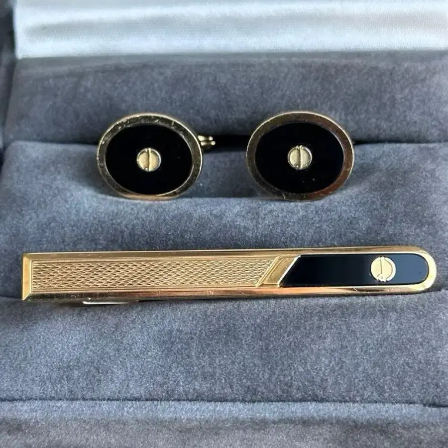 던힐 라운드형 넥타이핀 & 커프스 세트 골드 블랙 에나멜
