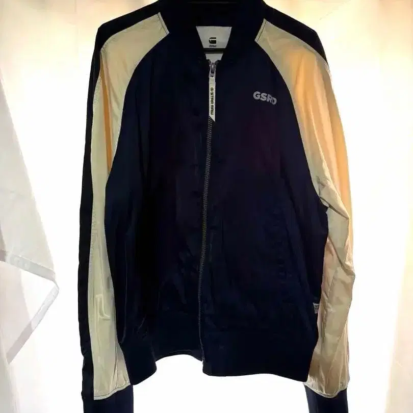 G-Star RAW의 M 사이즈, 네이비와 아이보리 배색이 특징인 나일론 자켓. - 브랜드: G-Star RAW - 사이즈: M - 색상: 네이비/아이보리 - 스타일: 나일론 자켓 - 디자인: 집업 - 특징: 리브 니트 옷깃과 소매 방문해 주셔서 감사합니다. 사이즈 - M