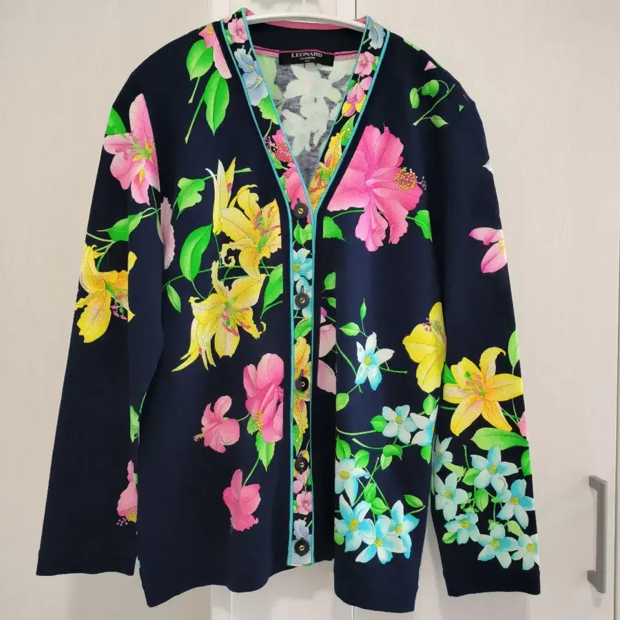 레오나르 가디건 니트 코튼 꽃무늬 올 패턴 여성용 321