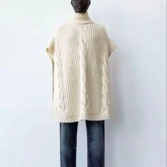 [새상품급] ZARA 케이블 니트 터틀넥 베스트 판초