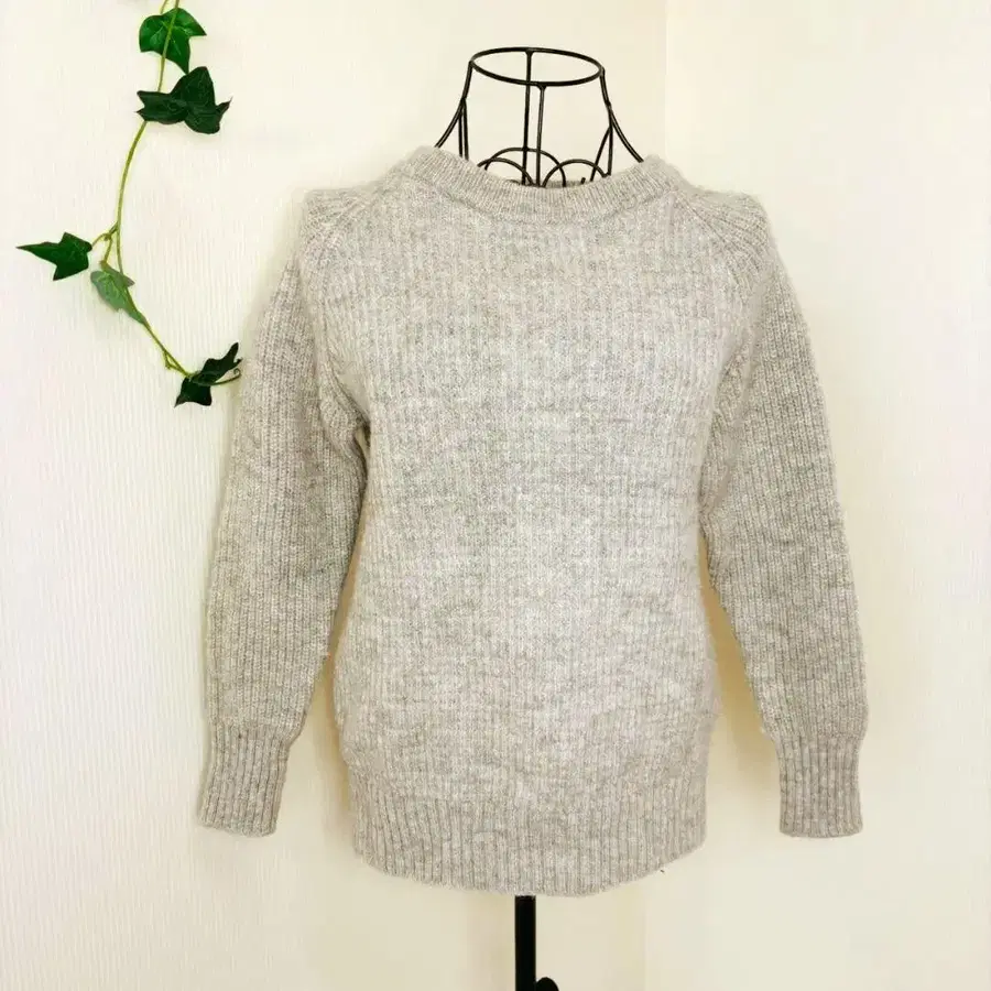 자동 번역되었어요. 원문보기리브 니트 그레이 긴팔 스웨터, 크루넥 디자인.