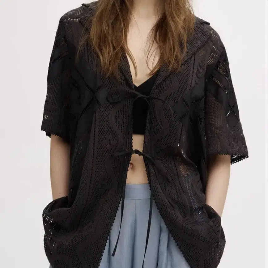 레이스 콤비 하프 슬리브 재킷 셔츠