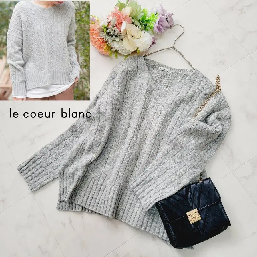 르 쿠르 블랑*케이블 V넥 볼륨 니트*그레이