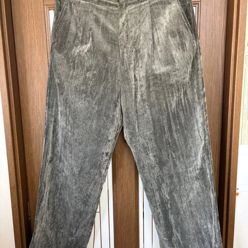 벨벳 소재의 모스그린 벨로아 슬랙스,