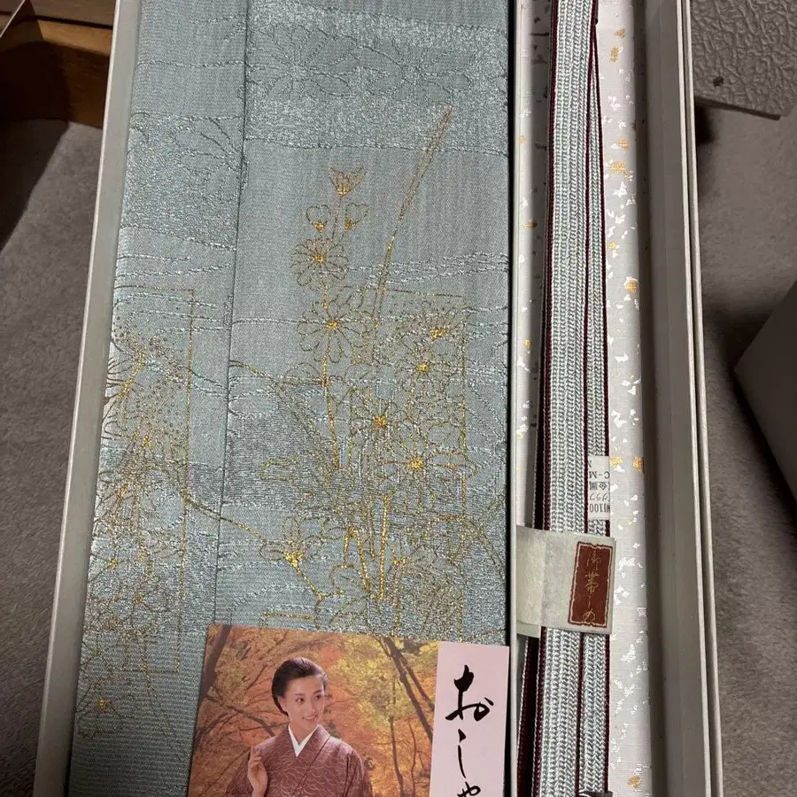 미사용! 스카이블루 오비 장식 천과 허리띠 세트