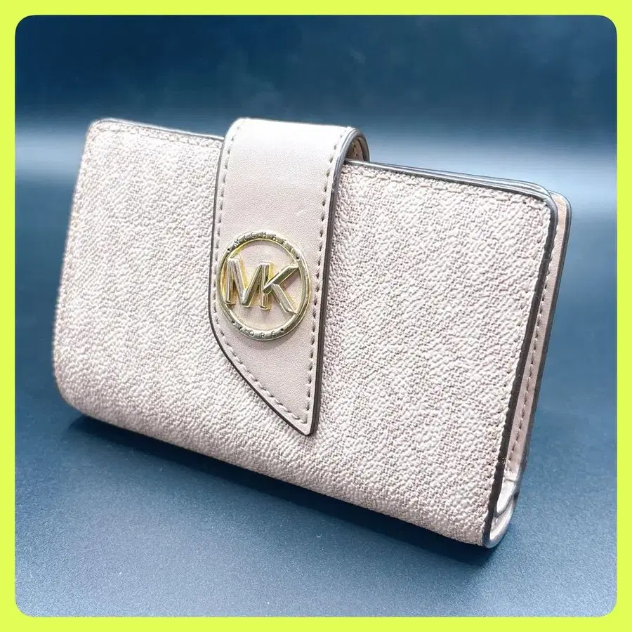 컨디션 최상 마이클코어스 핑크 시그니처 접이식 지갑 골드 금장 장식
