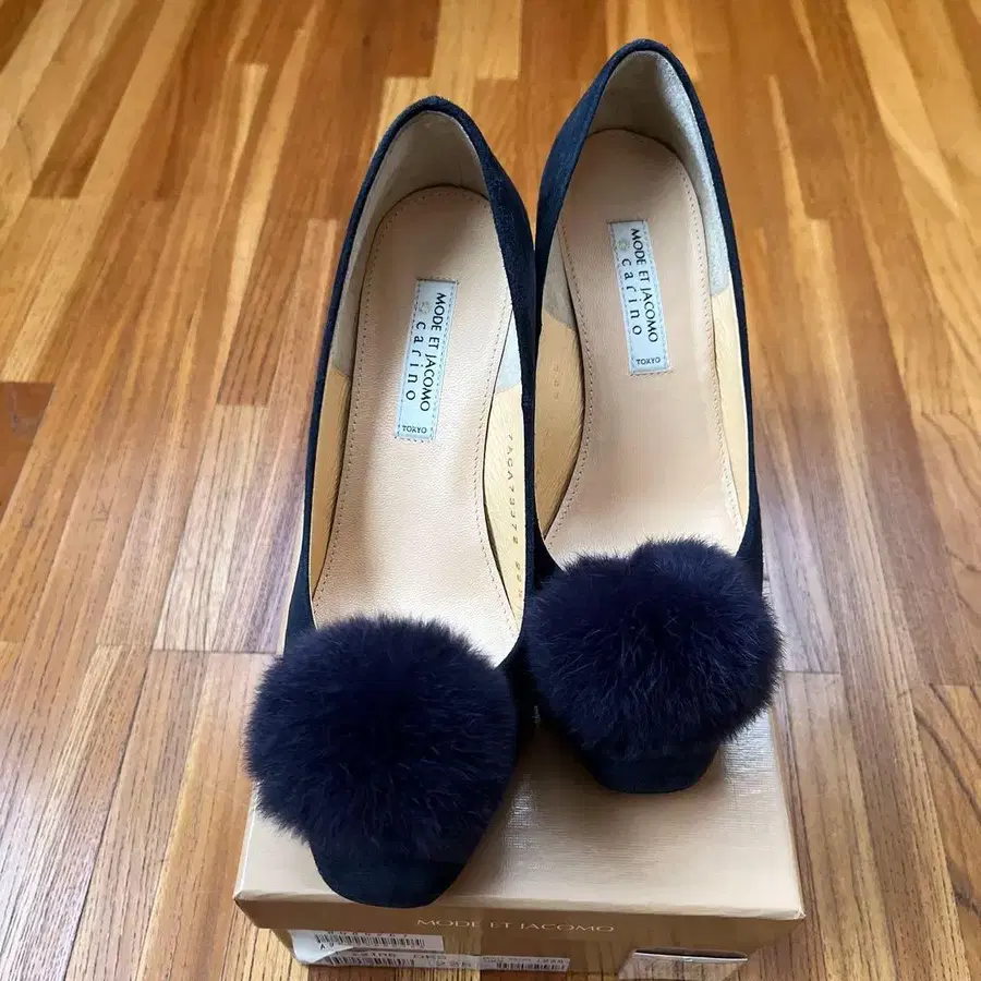 MODE ET JACOMO carino 네이비 퍼 장식 펌프스