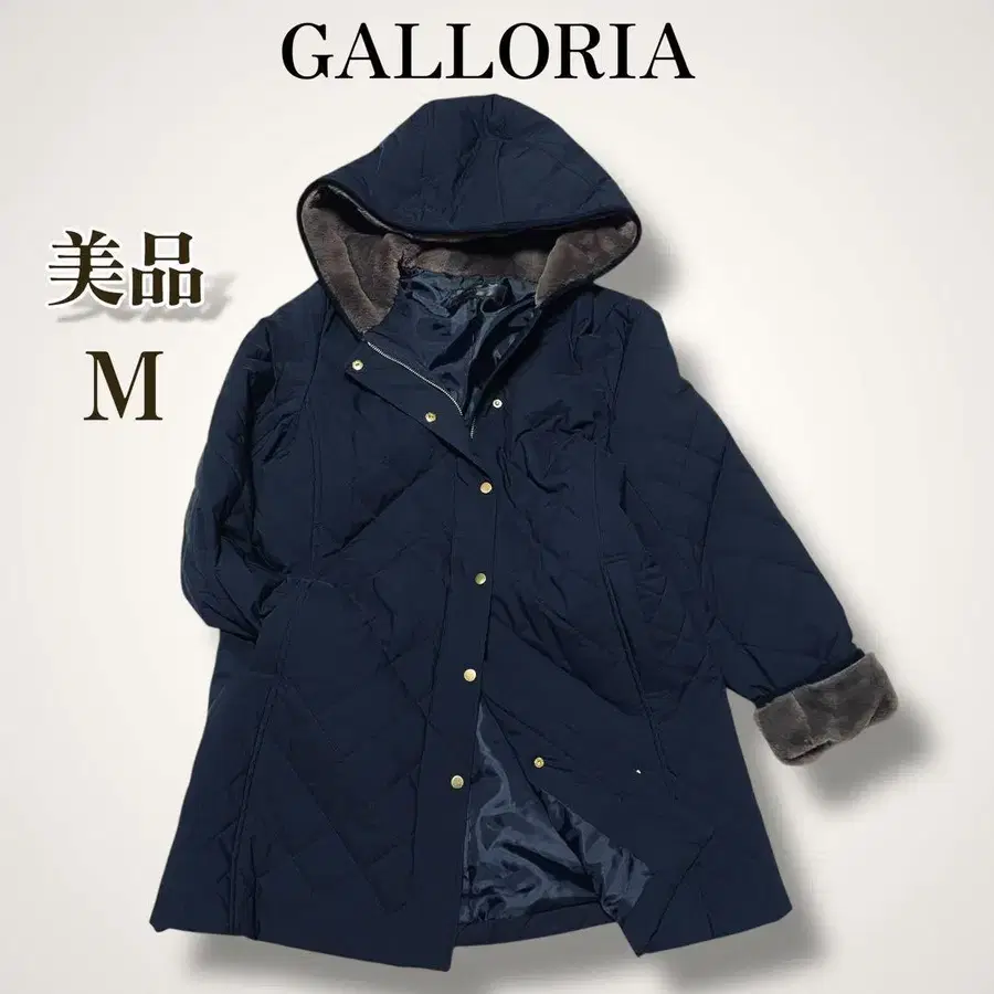 GALLORIA 갤로리아 충전솜 코트 퀼팅 코트 후드코트 퍼 포함 인조 모피 네이비 코트 여성용 아우터 고급 깔끔 성숙 캐주얼 방한 겨울