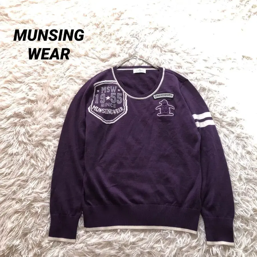 먼싱웨어 [ L ] 골프웨어 울 혼방 얇은 소재 니트 로고 자수 퍼플