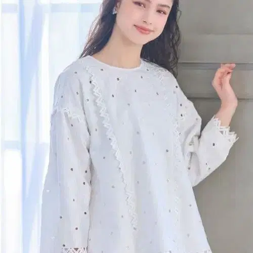 플라워 모티브의 컷워크 자수를 전체에 베푼 호화로운 상의.