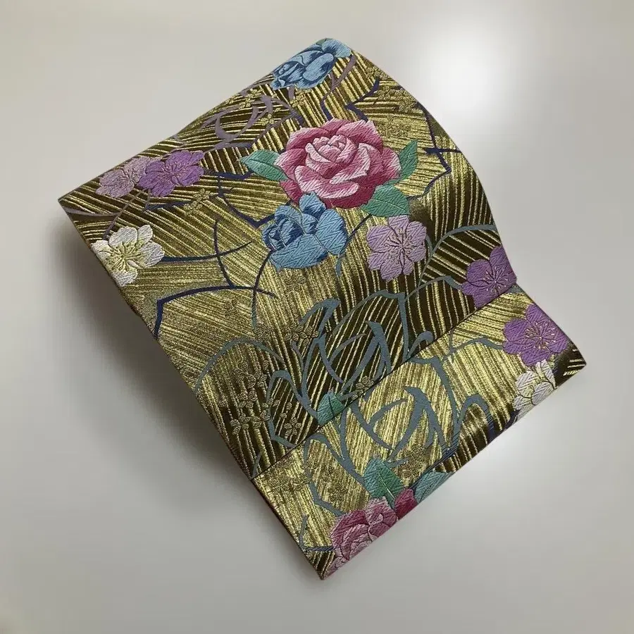 No.2906 순수 실크 당직 장미 벚꽃 금박 후쿠로 오비 새상품급