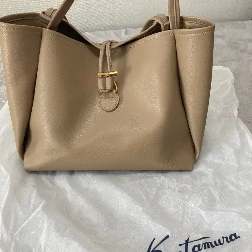K 엠보싱 로고 토트백 베이지