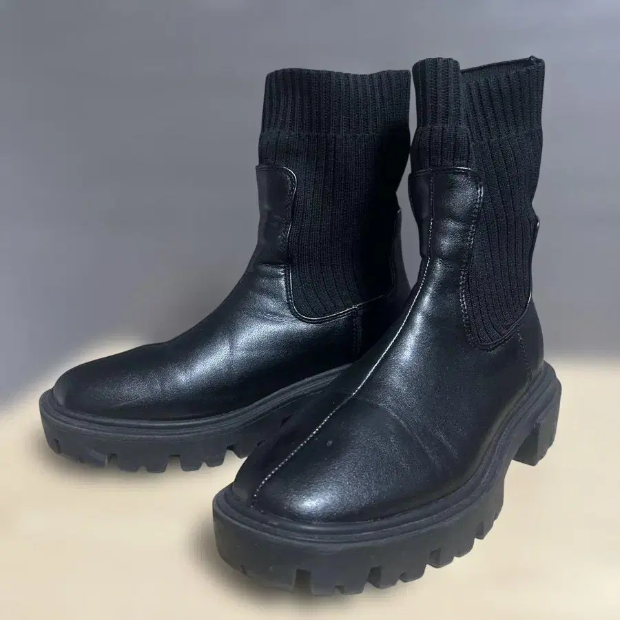 kastane 사이드 고어 부츠 블랙 가죽 니트