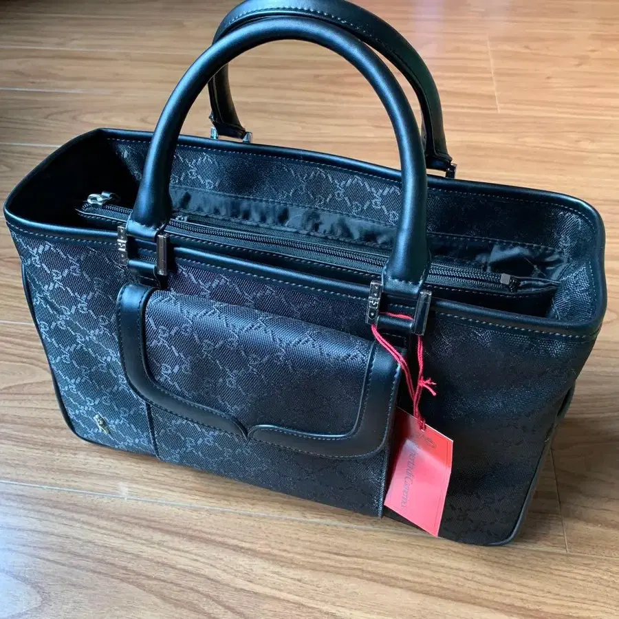 로베르타 디 카메리노 올 패턴 핸드백 가죽 캔버스 블랙