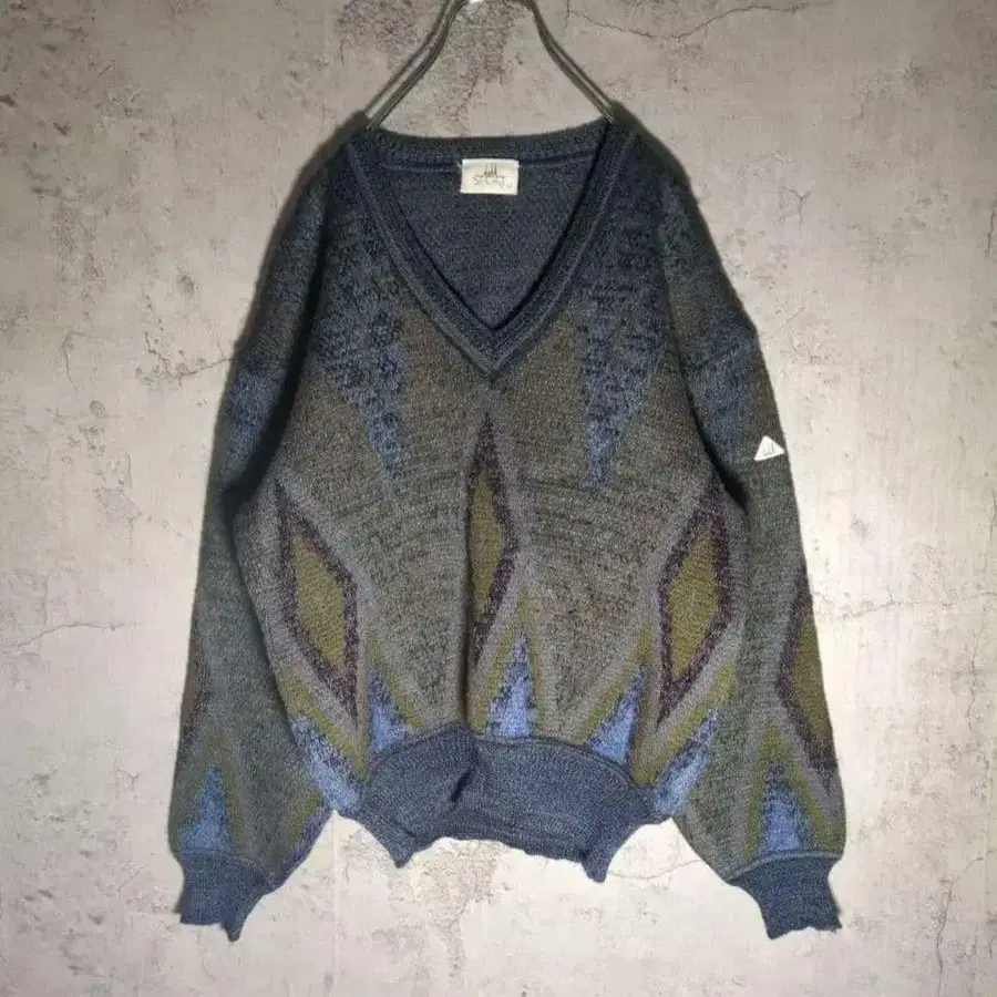이탈리아제 모헤어 니트 블루 vintage 올 패턴