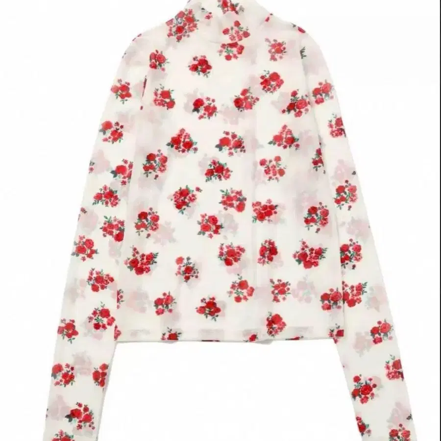 POPPY 플라워 프린트 레드 부케 시스루 상의 빨간색 하이넥