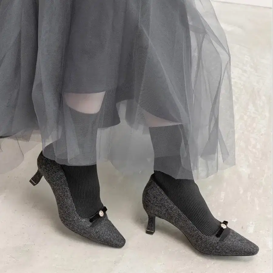 RANDA 펄 리본 니트 도킹 부츠 블랙 M