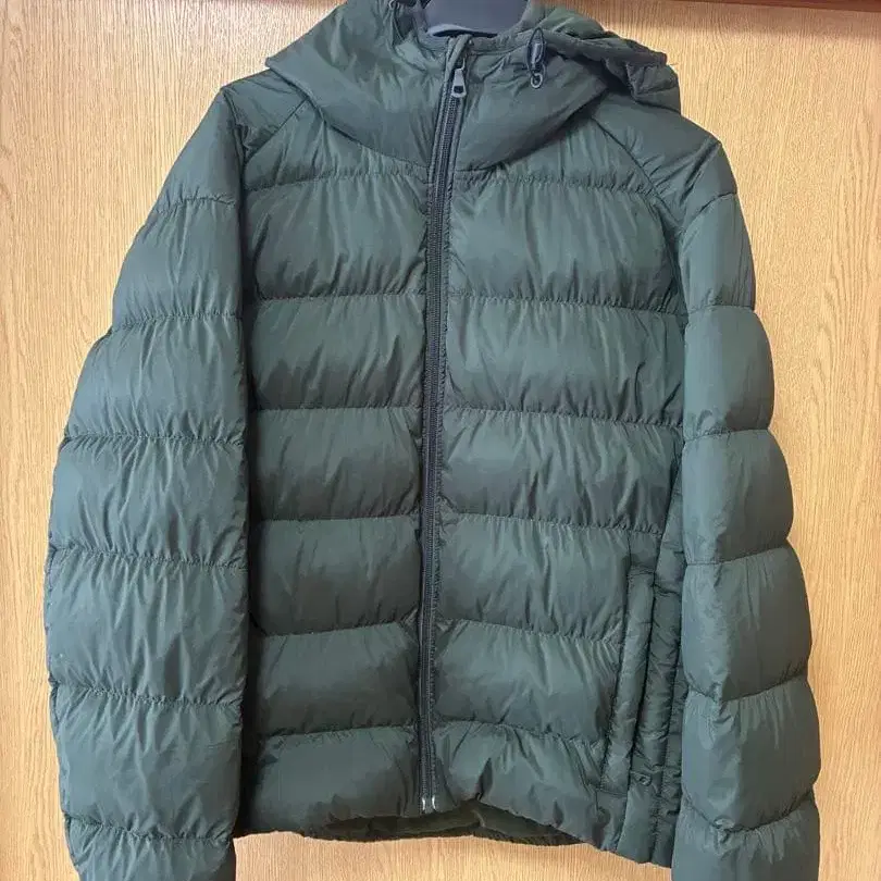 유니클로 다운 남성용 그린 녹색 M 후드 부착