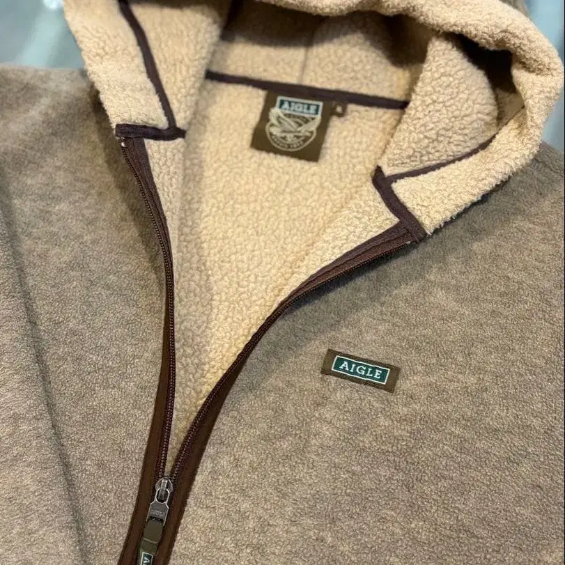 AIGLE 플리스 자켓 브라운 후드 부착 보아