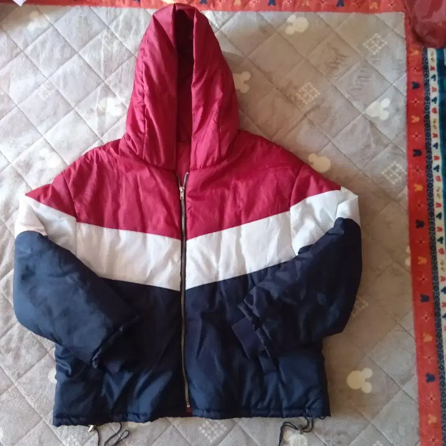 후드 부착 빨흰 네이비 점퍼 여성용 M 사이즈 남성용도 가능