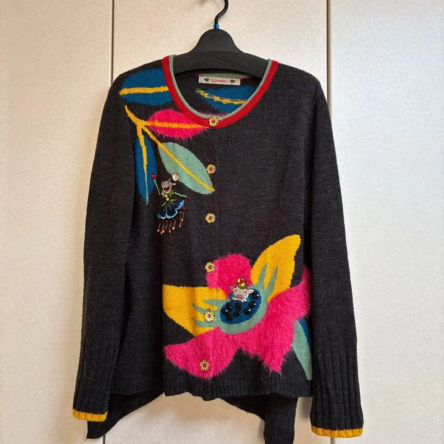 자수 그레이 긴팔 가디건