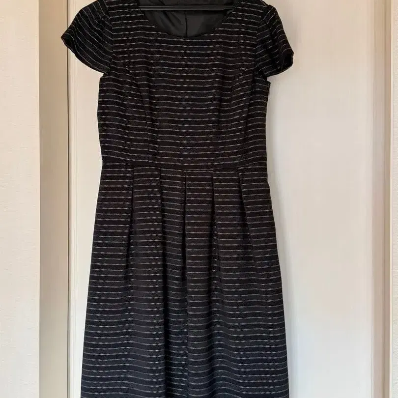 블랙과 화이트 스트라이프 원피스와 자켓 세트
