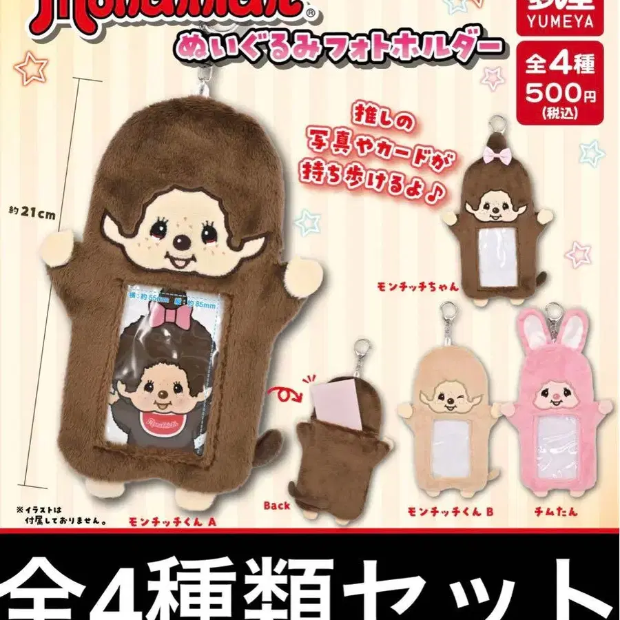 몬치치 봉제인형 사진 홀더 전 4종 풀세트입니다.